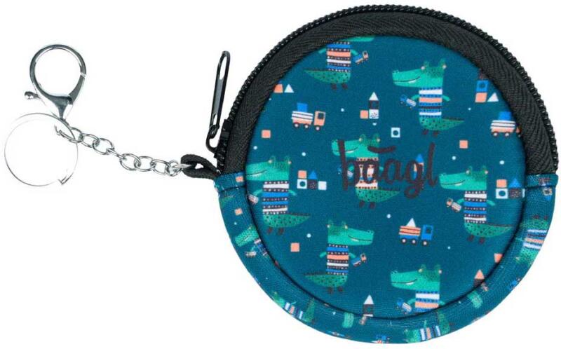 Portofelul rotund pentru elevi Baagl KROKODÝL are un imprimeu crocodil și poate depozita banii de buzunar.