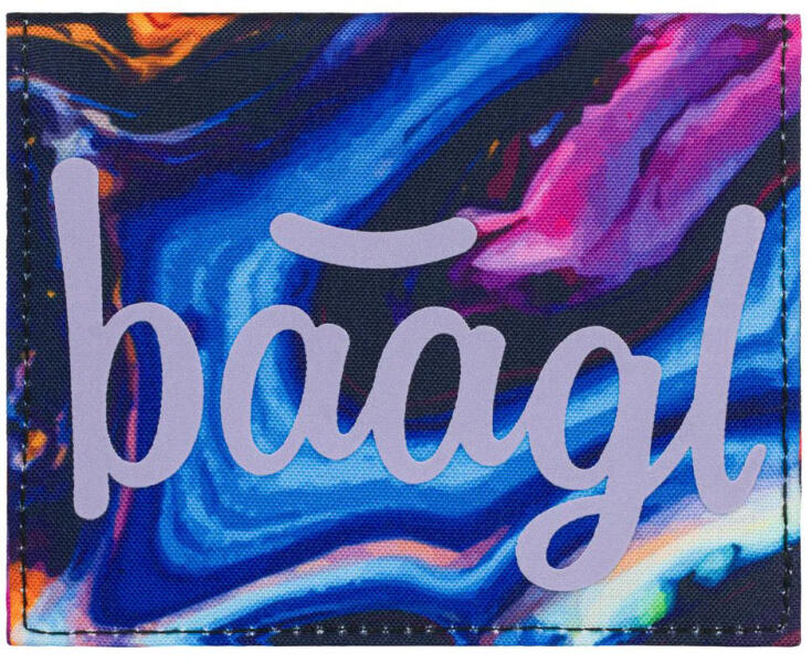Portofelul practic pentru elevi Baagl MARBLE beneficiază de logoul BAAGL și se fixează cu capsă.