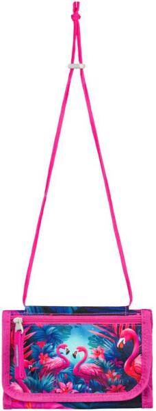 Portofelul cu velcro Baagl PLAMEŇÁCI este prevăzut cu un motiv de animale simpatice. Există și un un șnur reglabil cu blocare pentru agățat la gât și un buzunar pentru mărunțiș.