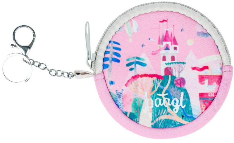 Portofelul rotund pentru elevi Baagl POHÁDKA are un motiv cu castele din povești și poate depozita banii de buzunar.